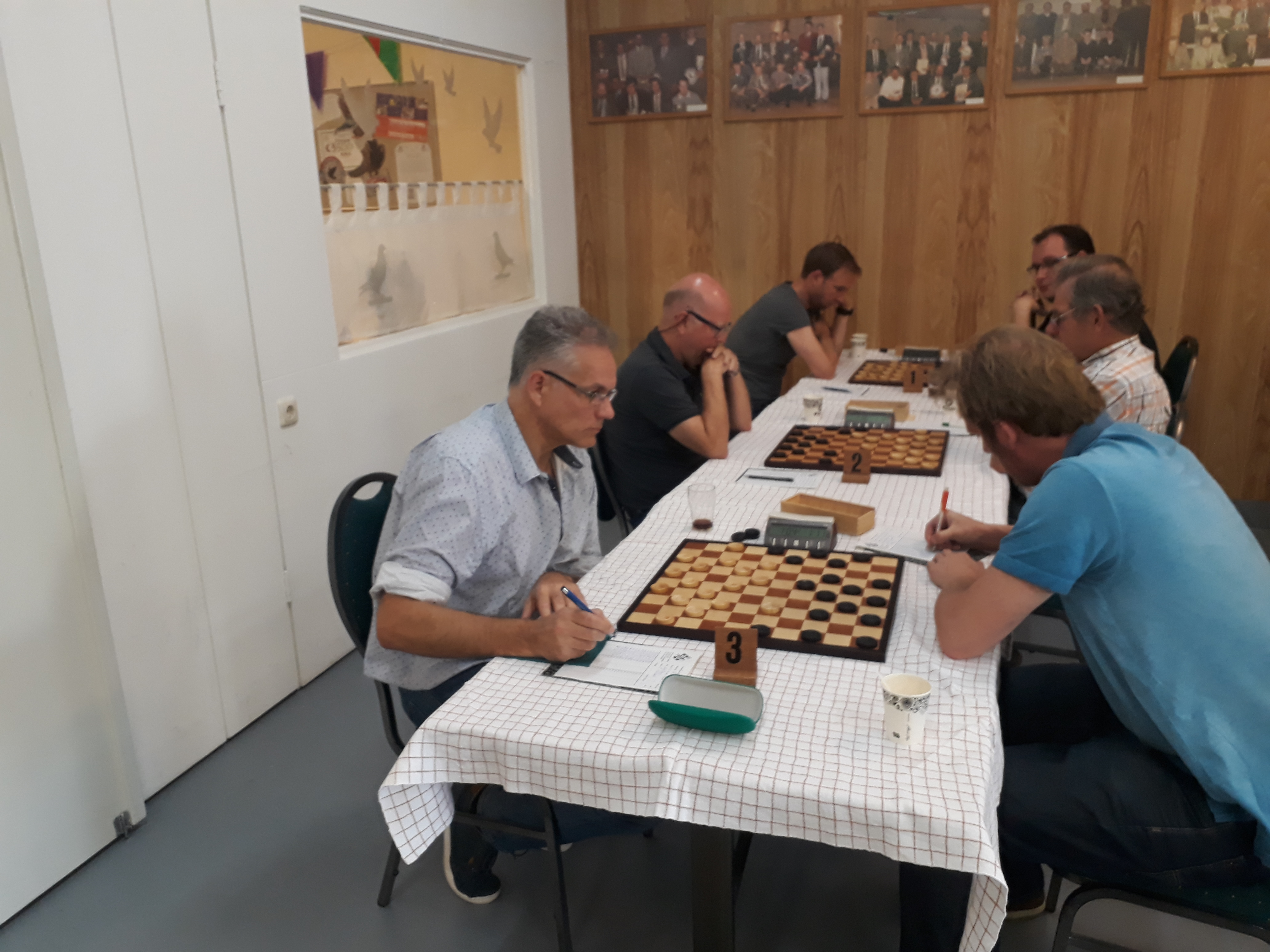 Waar Jan v.d. Pol normaal gesproken iets voorzichter speelt, nam hij deze keer iets teveel risico in een lastige stand en liet ongewild Laren op gelijke hoogte komen. Teamcaptain Bert bracht zijn team vervolgens weer aan de leiding. Nadat hij de damlijn had gehaald werd deze hem onmiddellijk weer afhandig gemaakt, met een schijf meer won Bert vervolgens vrij eenvoudig. Invaller René trof in Johan Haijtink een taaie tegenstander waarbij het lange tijd leek dat hij een schijf zou winnen. Uiteindelijk lukte dit net niet, zodat hij met remise genoegen moest nemen.